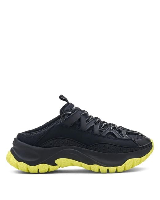 Black/yellow panelled design mesh panelling logo-print tongue pull-tab at the tongue almond toe front lace-up fastening slip-on style open back branded insole rubber sole Size: 37. Gender: Female. Material:Other fibres. Colour: blue