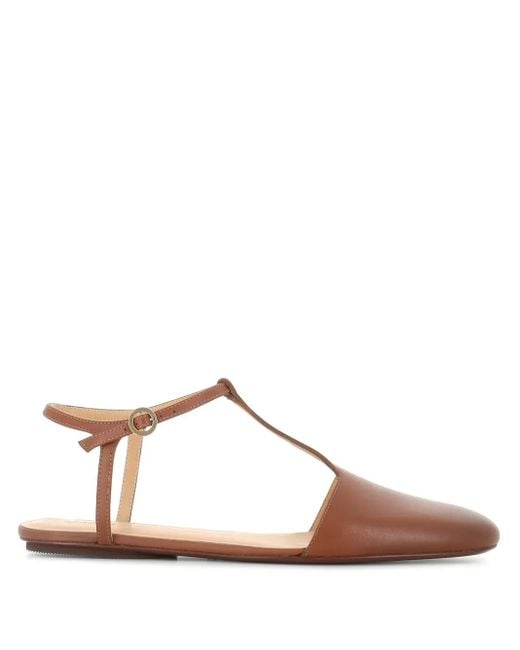 Camel brown buckle-fastening ankle strap flat leather sole round toe Size: 40. Gender: Female. Material:Leather/Leather/Leather. Colour: brown