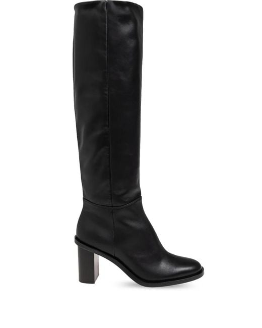 Black calf leather round toe side zip fastening knee-length high block heel Size: 36. Gender: Female. Material:Rubber/Calf Leather/Calf Leather. Colour: black