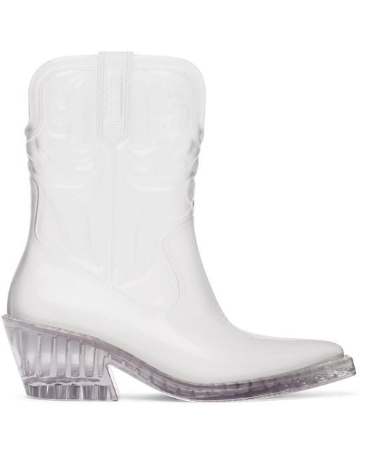 Ankle-high transparent and lightweight PVC boots. · Quilted detailing throughout · Pointed toe · Logo embossed at sides · Grenflex insole · Rubber block heel · Treaded rubber sole · Heel: H2.25 Supplier color: Silver