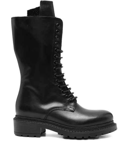 Women's Black 40Mm Lace-Up Leather Combat Boots