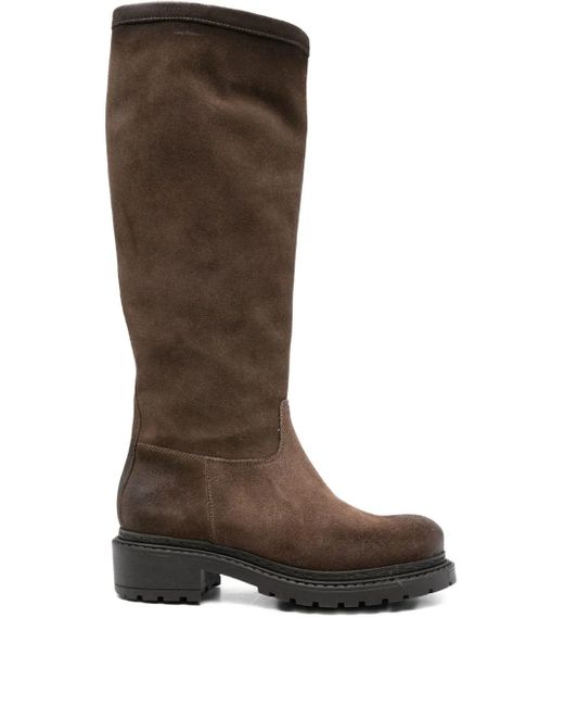 Women's Brown 40Mm Suede Leather Knee-High Boots