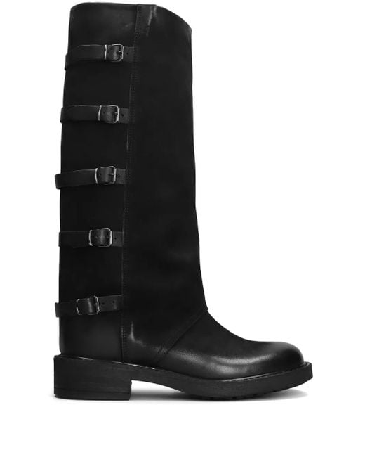 Black side buckle fastening round toe 45mm block heel Size: 36. Gender: Female. Material:Nubuck Leather/Rubber/Calf Leather. Colour: black