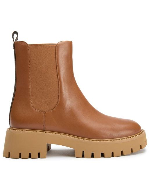 The Asher bootie merges timeless Chelsea styling with polished Michael Kors sophistication. Crafted from rich brown leather, it features classic twin elastic gussets for easy slip-on wear and a sturdy cleated rubber sole that delivers traction without sacrificing elegance. Gold MK branding and a convenient heel loop add signature finishing touches to this versatile ankle boot that transitions effortlessly from weekend errands to evening outings. Colour: brown