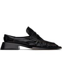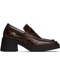 Go to SSENSEHandcrafted crinkled lambskin loafers in burgundy. · Gathering at square moc toe · Memory foam insole · Vegetable-tanned grained calfskin lining · Covered leather block heel with rubber injection · Leather sole with