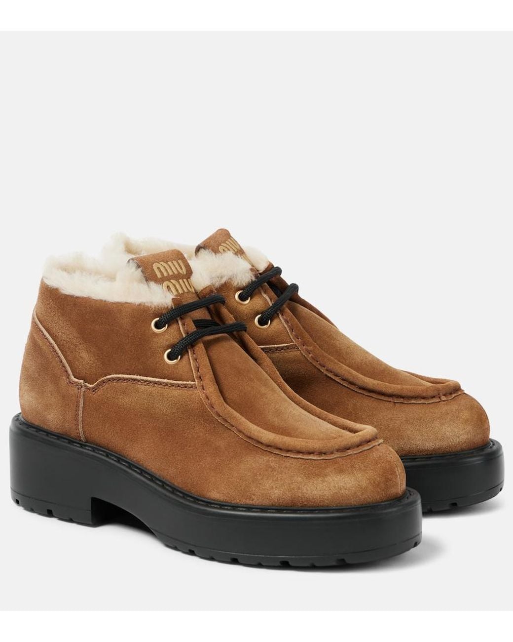 - Chunky Shearling-Trimmed Leather Flats