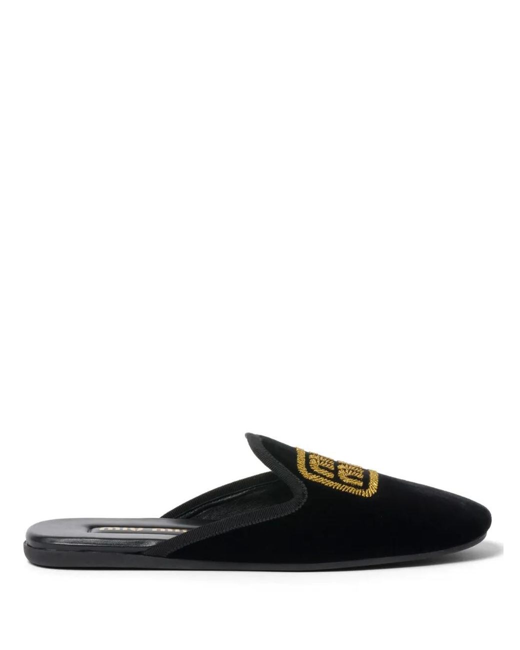 Black/gold-tone leather velvet embroidered logo to the front round toe slip-on style branded leather insole flat rubber sole Size: 35. Gender: Female. Material:Velvet/Leather/Rubber.