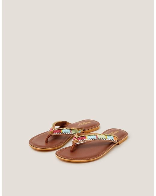 - Demi Beaded Leather Flip Flop Sandals Multi