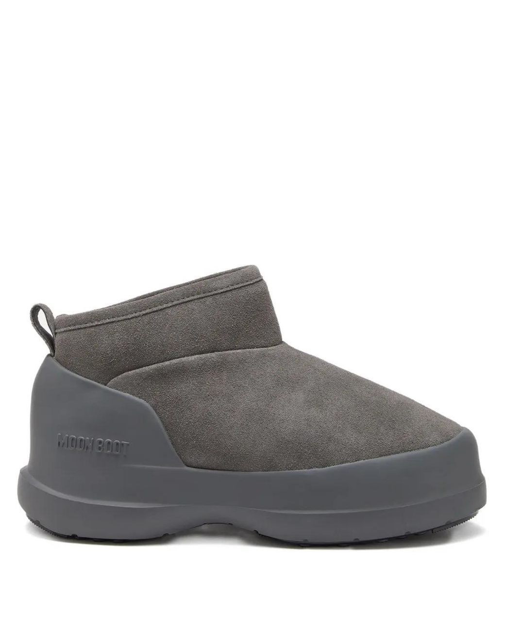 Anthracite grey calf suede debossed logo to the side pull-tab at the heel round toe slip-on style branded insole chunky rubber sole Size: 36. Gender: Unisex. Material:Suede.