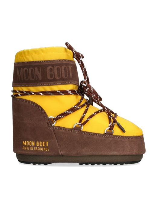Renowned for its retro-futuristic designs, Moon Boot has collaborated with knitwear label Guest In Residence to develop a comfort-driven collection fit for the colder months. Here, supple suede and contrasting technical panels create the exterior of the Icon Low boots, while treaded soles offer added grip on the slopes and beyond. Colour: yellow