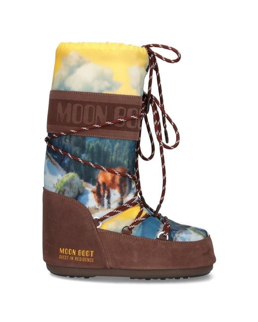 Moon Boot x Guest In Residence 'Icon' boots in multicolor fabric with round toe, padded design, lace-up closure, contrasting embossed logo on the side, adjustable top drawstring, suede details, rubber sole. - Sole: 100% rubber - Details: 100% leather
