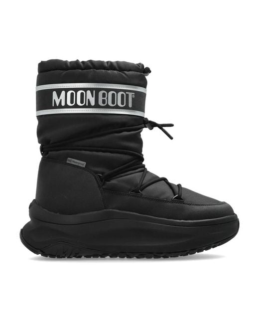 Moon Boot Moon 247 Polar WP Snow Boots combine a waterproof construction with a wide, quilted upper and a deep-tread sole for stable, comfortable wear in snowy conditions. Key attributes: Black | Polyester | Waterproof | Non-slip tread | EVA midsole for cushioning | Criss-cross tubular laces | Metal eyelets | Slip-on design | Wide quilted upper | Horizontal strap with bold "Moon Boot" logo | Matte-texture finish | Tongue detailing | Dimensions & fit: Sole height (highest point): 5.5 cm | Fits large; consider taking a half size down. | Composition & care: Upper: 59% polyester, 41% polyurethane | Lining: 100% polyester | Sole: 85% Eva, 15% thermoplastic rubber Colour: black