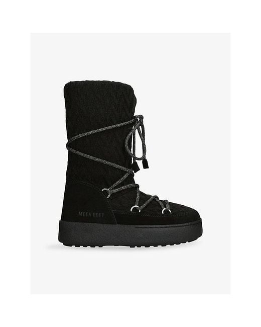 Moon Boot x Guest in Residence knitted boots36% wool, 36% acrylic, 28% leatherLace-up fasteningRound toe, laces, metal eyelets, branded details, knitted texture, chunky soleWipe with a clean, dry clothUpper: 36% wool, 36% acrylic, 28% leatherLining: 100% polyesterSole: 100% rubber Colour: black