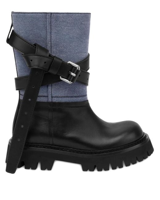 Black buckle-strap fastening contrasting panel detail round toe ridged rubber sole Size: 38. Gender: Female. Material:Viscose/Polyurethane/Calf Leather/Cotton/Rubber. Colour: black