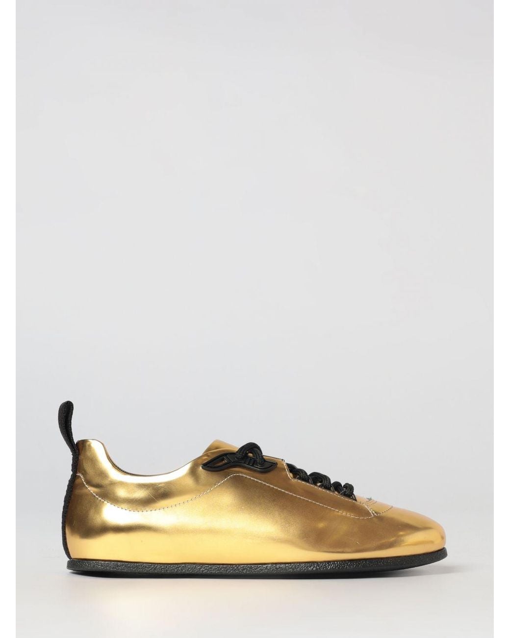 Leather Trainer With Snakeskin-Effect Detail - Black