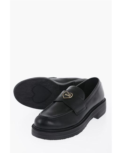 Women's Black Love Leather Loafers With Heart-Shaped Detail