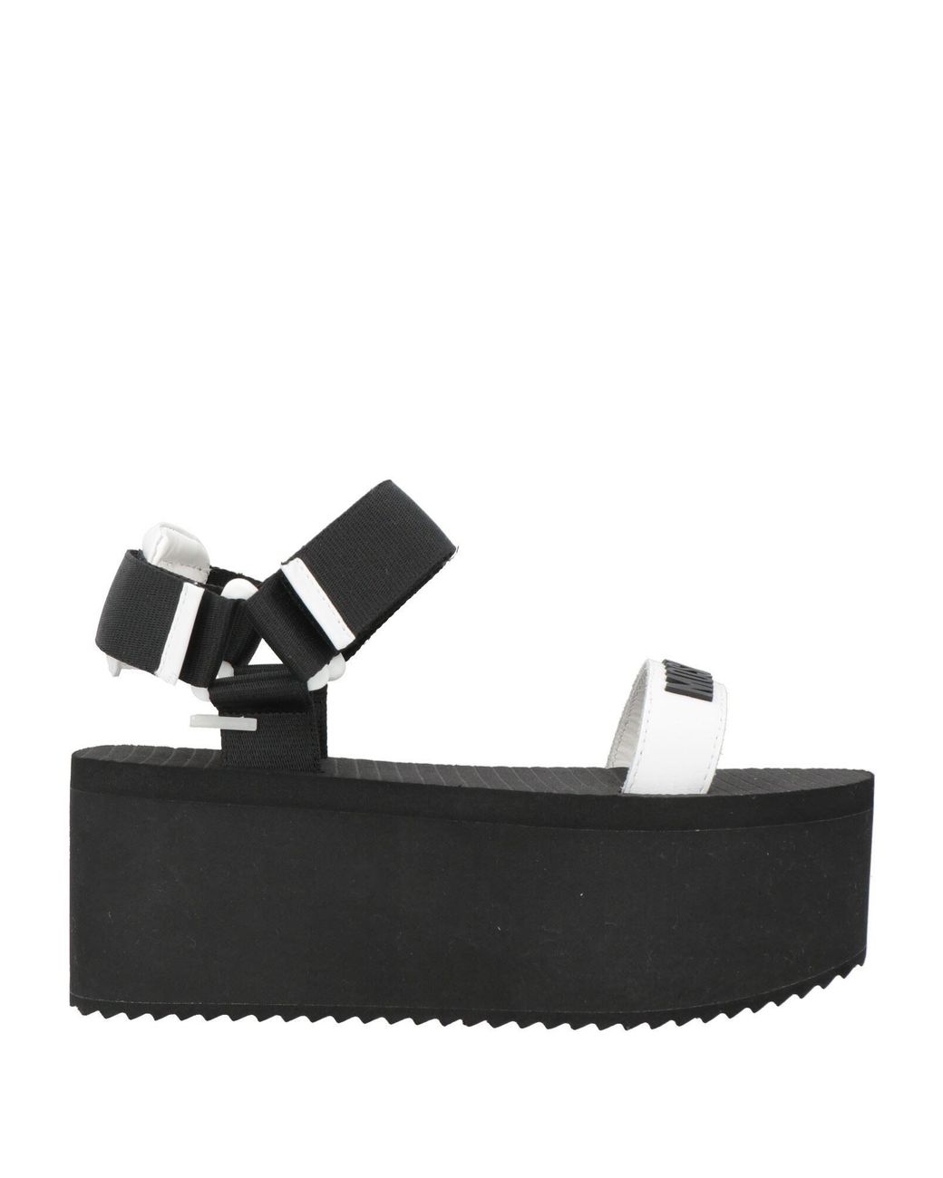 MOSCHINO. technical sandals, leather, shell, two-tone, brand logo, leather lining, velcro fastening, round toe, flatform, rubber cleated sole, contains non-textile parts of animal origin. Calfskin, Textile fibres. Colour: black