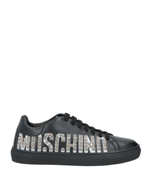 MOSCHINO. leather, studs, brand logo, plain colour with appliqués, leather lining, lace-up, round toe, flat, rubber cleated sole, contains non-textile parts of animal origin, low-top trainers, large sized. Leather.