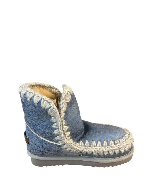Denim blue stitch detail pull on style ridged sole logo plaque round toe Size: 36. Gender: Female. Material:Sheep Skin/Shearling/Sheep Skin/Shearling/Rubber. Colour: blue