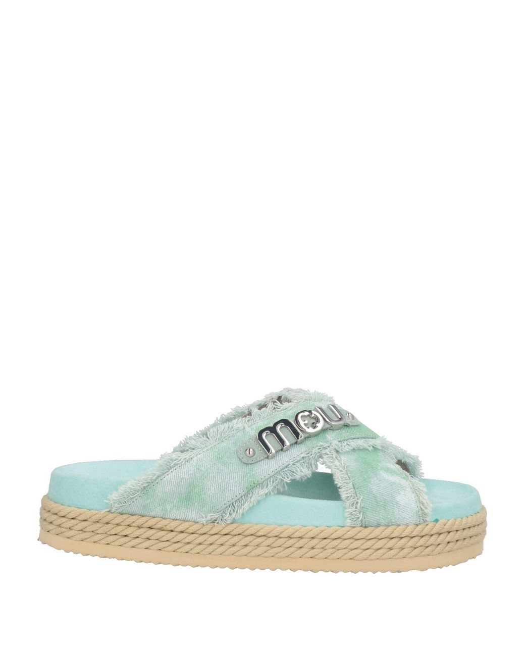 MOU. sandals, gabardine, tie-dyed, brand logo, round toe, rubber sole, leather lining, contains non-textile parts of animal origin. Textile fibres.