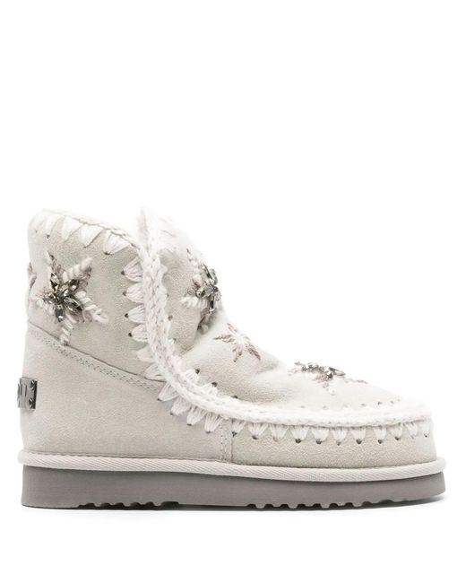 Women's Natural Star-Embroidered Moccasin Ankle Boots