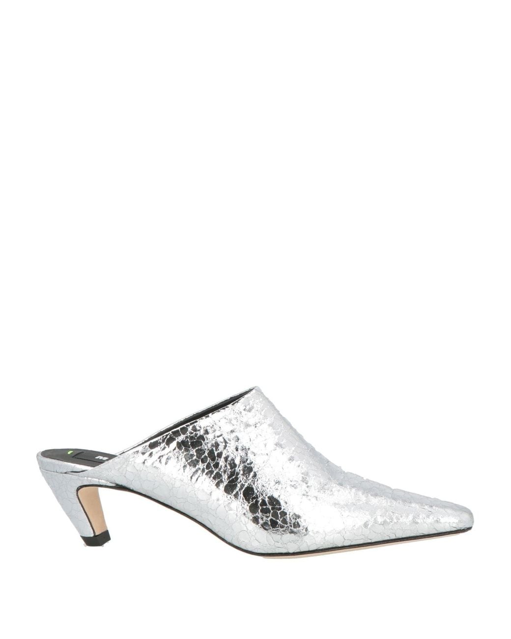 MSGM. mules, textured-leather, metallic, plain colour, no appliqués, fully lined, square toe, geometric heel, covered heel, leather sole, contains non-textile parts of animal origin. Leather.