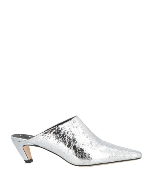Metallic Leather Mules - White