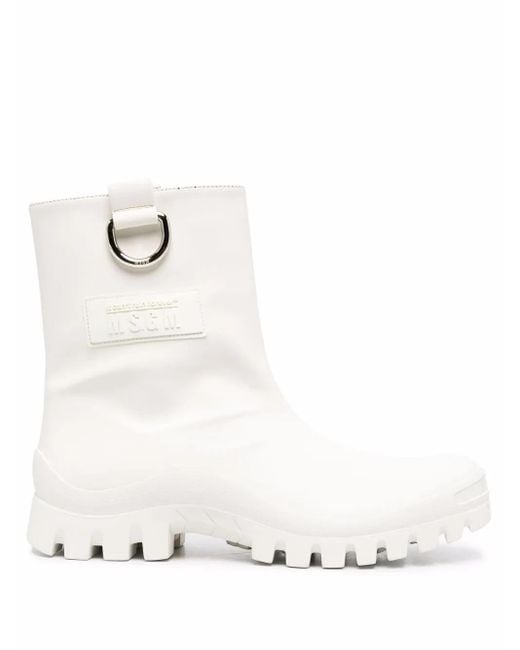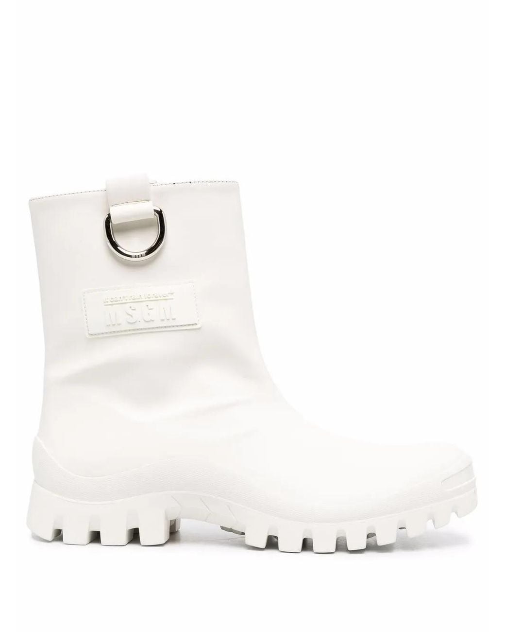 White leather slip-on style ankle-length round toe silver-tone hardware flat rubber sole Size: 36. Gender: Female. Material:Rubber/Leather/Leather. Colour: white