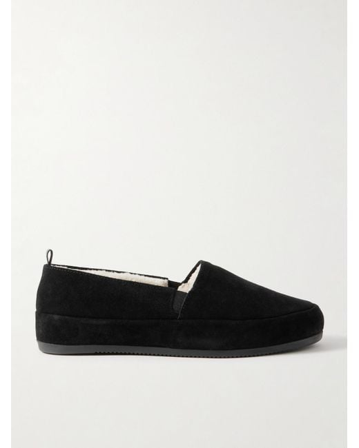 Mulo's signature loafers combine the fit and feel of trainers with the ease of classic espadrilles. This pair is handmade from suede and lined with cosy shearling. The cushioned footbeds promise all-day comfort, whatever your plans. Colour: black