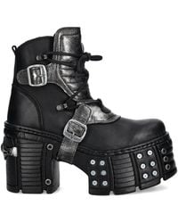 New Rock Women's Black 100Mm Buckle Platform Boots