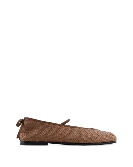 Women's Brown Bulla Node Woven Tie Ballet Flats