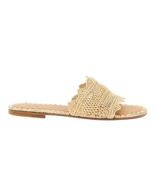 Odissi Lucia Slides pair a woven raffia upper with a rounded toe and a leather insole for easy warm-weather wear. The handcrafted construction and a leather sole with a non-slip rubber island deliver stable, everyday comfort. Key attributes: Beige | Raffia | Non-slip rubber island | Leather insole | Leather sole | Slide-on design | Handcrafted — natural variations and small imperfections are characteristics of uniqueness | Rounded toe | Woven raffia upper | Open slide silhouette | Dimensions & fit: EU sizing | Composition & care: Raffia | Leather insole | Leather sole | Rubber (non-slip island) Colour: white