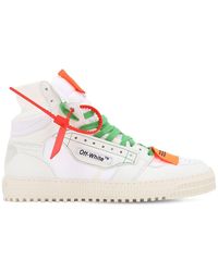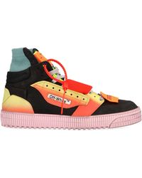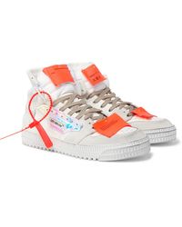 Off White c/o Virgil Abloh's Off Court high tops have become somewhat of a signature for the house: a style combining classic basketball inspired details with the bold nuances that we've come to expect from the brand – just take the splashes of neon and tag embellishments that make this pair the seriously note worthy kicks that they are. Crafted from soft leather with contrasting canvas details, and sat atop a retro inspired chunky rubber sole, we suggest that you wear them with your best streetwear and prepare to get papped. Off White c/o Virgil Abloh leather trainersLace up fasteningRound toe, perforation at the toe, contrast panels, plastic tag at eyelet, branding, high top silhouetteLeather and canvas upper, rubber soleMade in Italy.