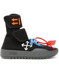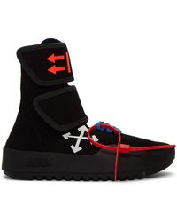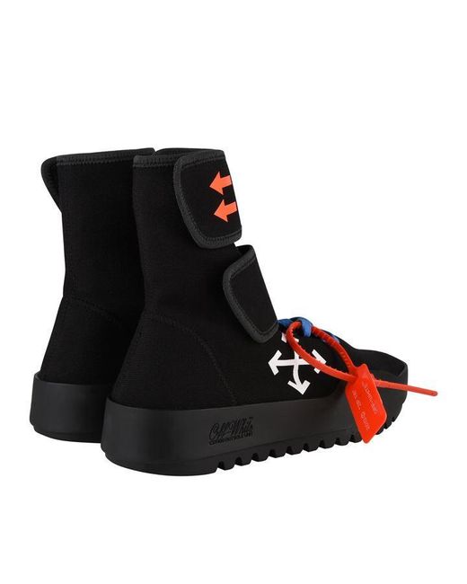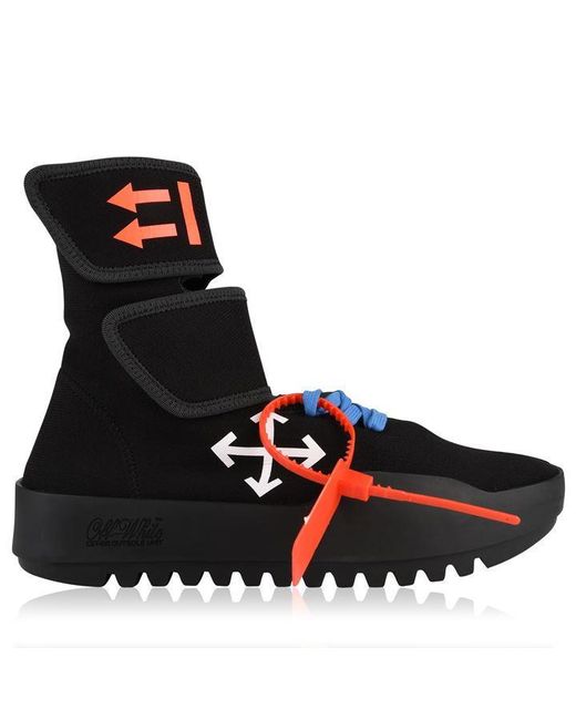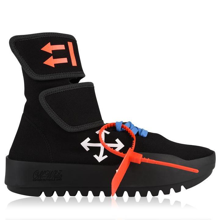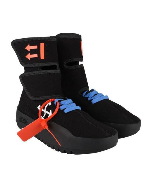 Enhance your footwear collection with these moto wrap high top trainers from Off White. This contemporary pair are crafted to a high top style, feature a rounded toe and central lace closure. Boasting bold velcro straps to the ankle, a ridged branded sole and iconic eye catching logos, this pair are not one to be missed. Size selection: British sizing (European sizing)Upper and lining: textilesSole: other materialsFits true to size, take your normal size Black 1001 8 (42). Colour: black