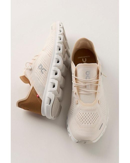 These runners feature mesh uppers, cushy midsoles, and Speedboard® engineered for all-day performance for a packable, breathable choice. **Features:** Zero-Gravity CloudTec® provides a cushioned feel, Speedboard® engineered for all-day performance and support, updated breathable mesh pattern provides increased breathability, cushy kick-down heel, textured outsoles for traction **Why We ❤ It:** This ultra-light pair is perfect for travel. On Cloud 6 Coast Trainers at Free People in Gardenia/Sphin Colour: natural