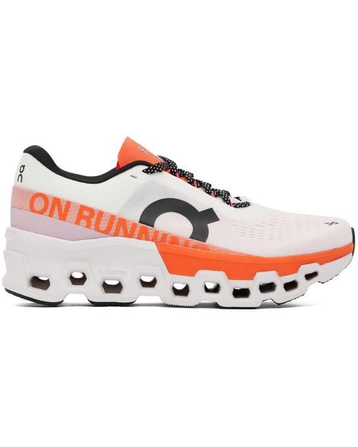 Low-top knit and mesh trainers in white and tones of pink. · Logo bonded at toe and sides · Lace-up closure · Reflective logo printed at tongue · Padded collar · Jersey lining · Helion™ CloudTec® foam rubber midsole · Treaded Speedboard® rubber sole Supplier color: Undyed/Flame Colour: black
