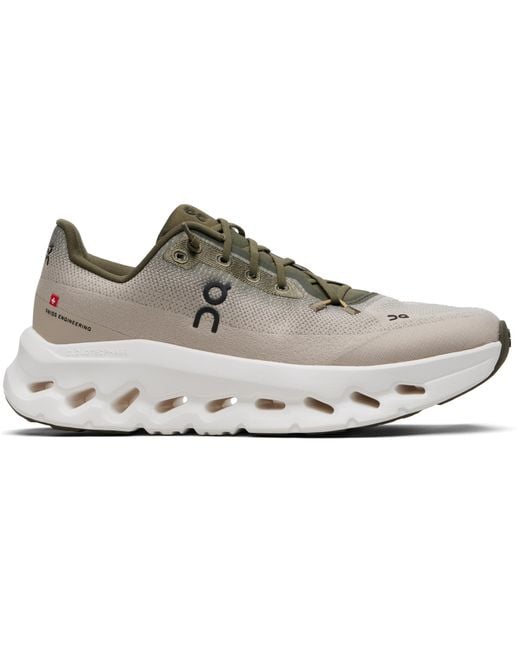 Low-top lightweight recycled mesh trainers. · Logos and bonded trim throughout · Lace-up closure · Padded tongue and collar · Text printed at outer side · Jersey lining · CloudTec Phase™ Helion™ foam rubber midsole · Treaded rubber sole Supplier color: Olive/Desert Colour: black