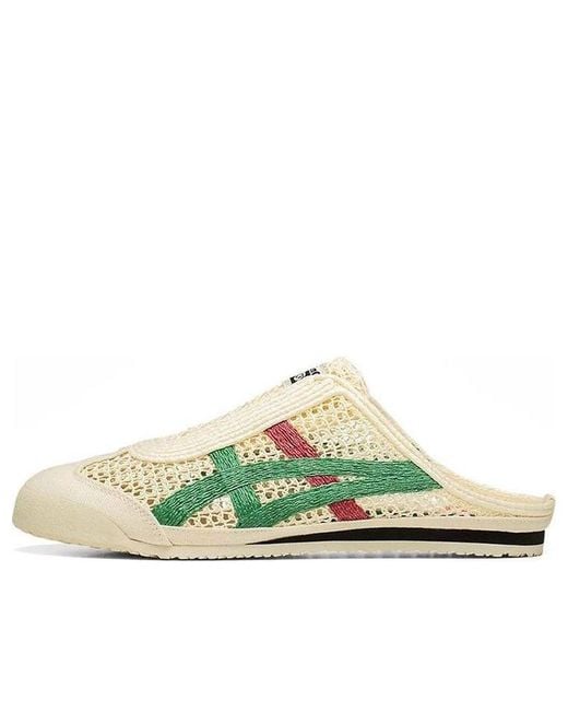 Elevate your style with the Onitsuka Tiger MEXICO 66 Sabot 'Cream Green Red' trainers. These unisex slip-ons boast a vibrant colour scheme and premium suede upper for durability. The lightweight sole ensures all-day comfort, making them perfect for any occasion. Embrace bold, contemporary style with these unique trainers. Onitsuka Tiger, a renowned Japanese sports brand, brings you quality and design in every step. Colour: green