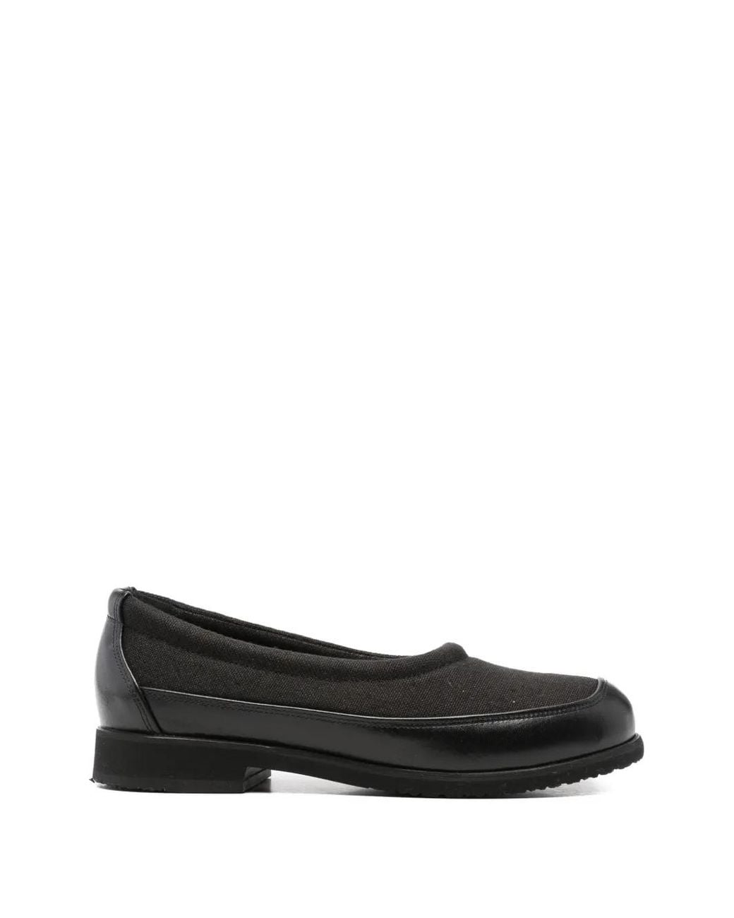 Black round toe textured panel tonal stitching Size: 35. Gender: Female. Material:Fabric/Fabric/Calf Leather/Rubber. Colour: black