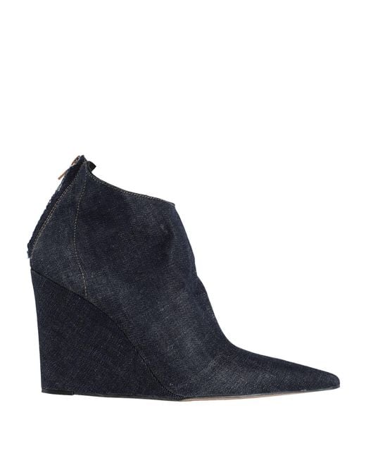 OVYÉ. ankle boots, denim, plain colour, no appliqués, fabric inner, zip fastening, pointed toe, wedge heel, covered wedge, rubber sole, contains non-textile parts of animal origin. Textile fibres.