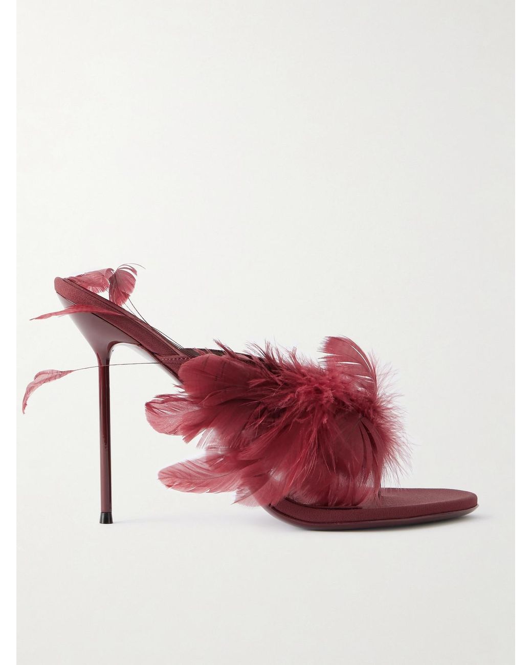 Women's Red Lidia Feather-Trimmed Leather Mules
