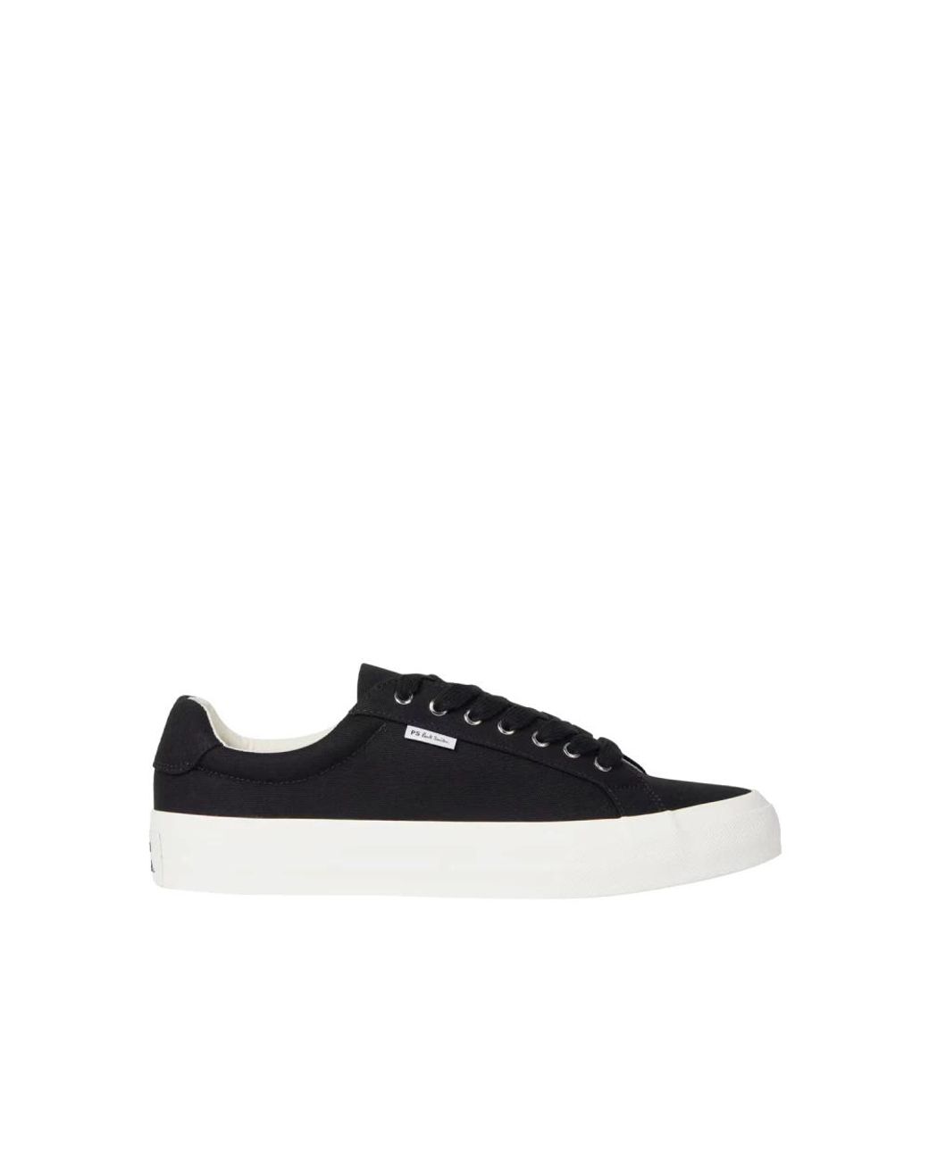 Step up your trainer game with these PS By Paul Smith Tela Amos trainers in black. These low-top lace-up trainers feature a canvas upper with the signature PS Paul Smith logo on the side and a vulcanized rubber sole with embossed logo detail at the back. Perfect for the modern man who values style and comfort. Color: Black. Material: 100% cotton upper, 100% rubber sole. Colour: black