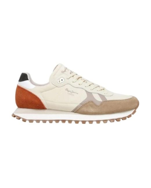 The Pepe Jeans Brit on Master trainer is a modern and casual model designed to provide comfort and style. Its beige colour is versatile and easy to combine with different styles and outfits. With a low construction for greater flexibility and freedom of movement, this trainer features an urban and modern style with discreet Pepe Jeans branding. Made with a mix of materials like suede or synthetic for durability and comfort, it has a non-slip rubber sole for good grip and stability. Lightweight and comfortable, it's perfect for daily wear in casual settings or hanging out with friends. Ideal for those seeking versatile, comfortable trainers with a simple yet elegant design that suits various occasions and styles. Colour: white