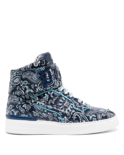 Navy blue calf leather paisley print logo patch at the tongue silver-tone logo plaque round toe front lace-up fastening press-stud fastening branded insole flat rubber sole Size: 40. Gender: Unisex. Material:Leather. Colour: blue
