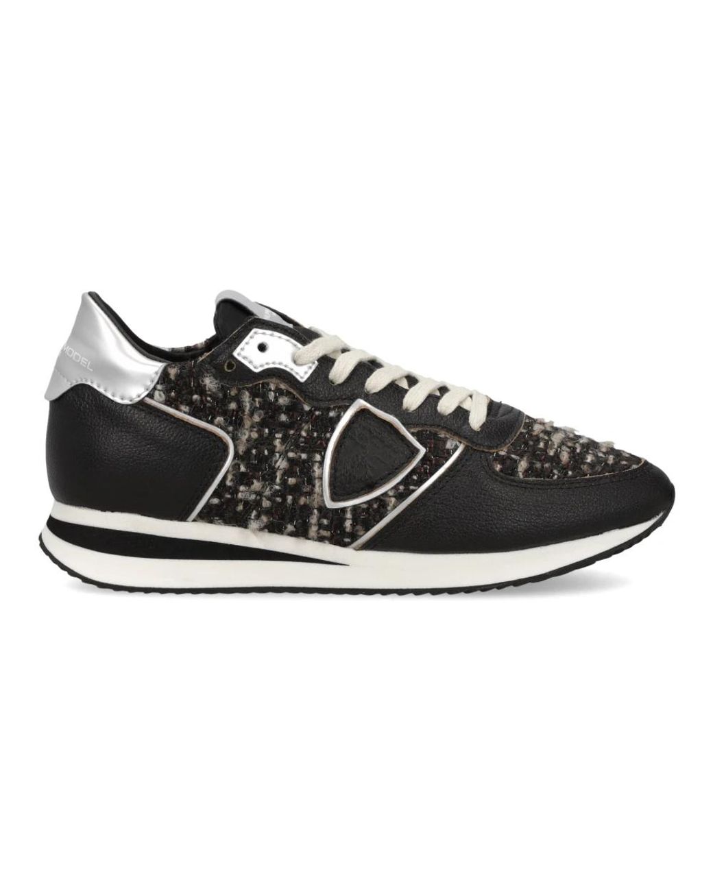 Philippe Model Trpx Running Trainers blend a vintage running silhouette with refined materials for sporty-chic everyday wear. The pair stands out for its suede and multicoloured tweed upper paired with laminated leather accents and an ultra-light handcrafted rubber sole. Key attributes: Black | Noir | Suede | Ultra-lightweight handcrafted rubber sole | 3 cm sole height | Cotton terry lining | Padded, removable insole | Low-top running silhouette | Multicoloured tweed panels | Laminated leather details | Sinuous, vintage-inspired sole | Dimensions & fit: Sole height: 3 cm | True to size | Composition & care: Suede | Multicoloured tweed | Laminated leather | Cotton terry (lining) | Rubber (sole) Colour: black