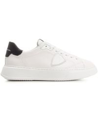 Go to TheBSPhilippe model white temple trainers, leather upper, laces closure, round toe, logo on the back Colour: white