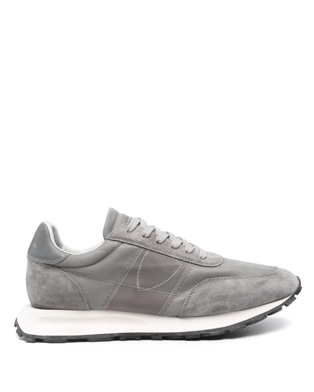 Anthracite grey suede panelling round toe embroidered logo to the side logo-print tongue branded heel counter padded ankle cushioned insole full lining contrasting rubber sole front lace-up fastening Size: 42. Gender: Male. Material:Nylon/Calf Leather/Fabric/Calf Leather/Rubber. Colour: white