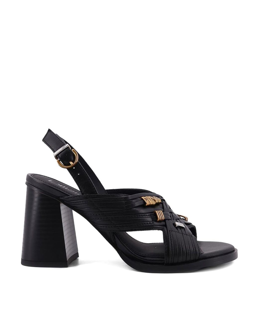 Black woven buckle ankle strap open toe block, tone hardware Colour: black