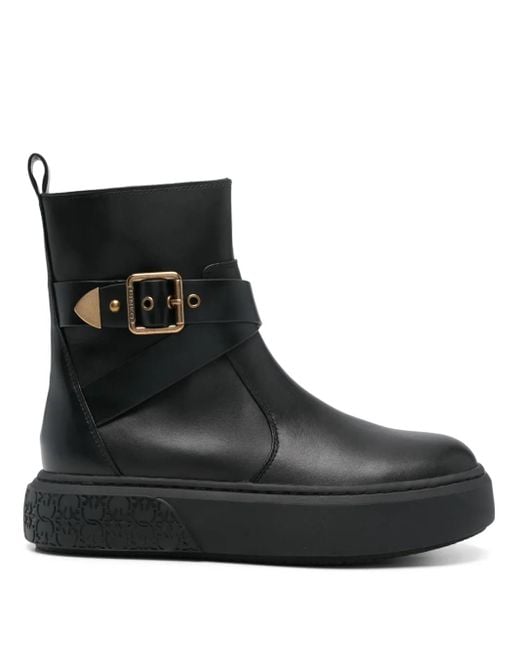 Black calf leather side zip fastening pull-tab at the heel decorative buckle detail engraved logo round toe branded leather insole rubber sole ankle-length Size: 36. Gender: Female. Material:Leather. Colour: black