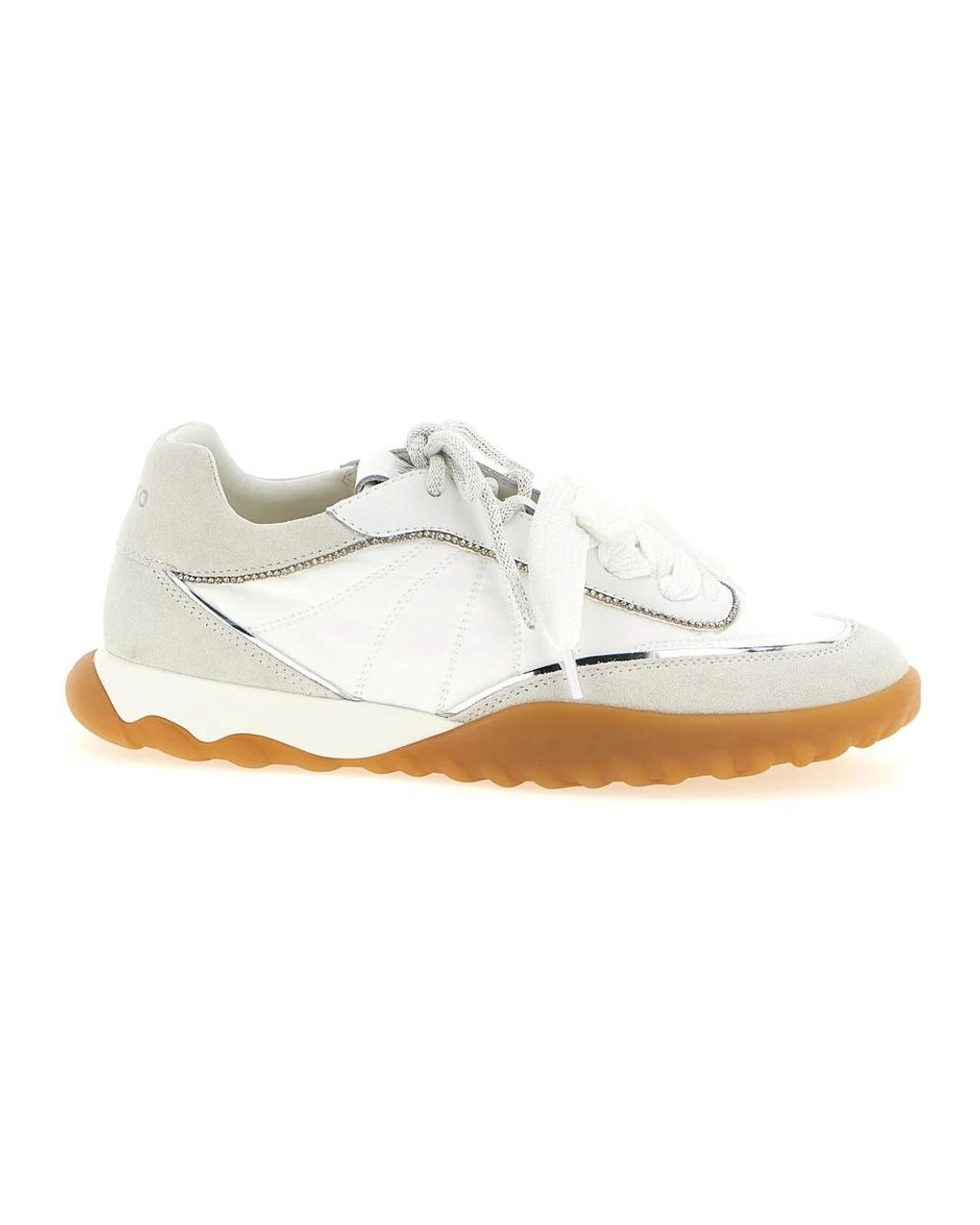 Pinko Gea 02 Trainers combine suede, smooth leather and mesh with a rhinestone top detail for a stylish everyday trainer. They feature a lace-up closure and a rubber sole for secure wear. Key attributes: White | Suede, smooth leather and mesh | Rubber sole | Lace-up closure | Top rhinestone detail | Mixed-material upper (suede, smooth leather, mesh) | Dimensions & fit: EU sizing | Composition & care: Suede | Smooth leather | Mesh | Rubber Colour: white